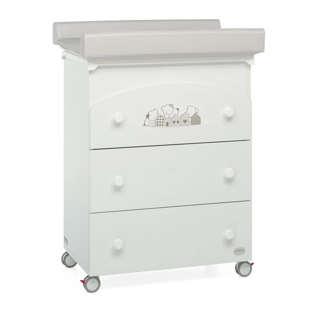 Caratterizzato da forme armoniose e teneri decori di animaletti sul cassetto superiore.