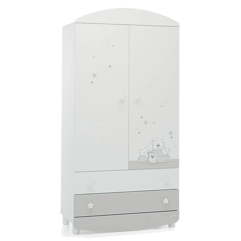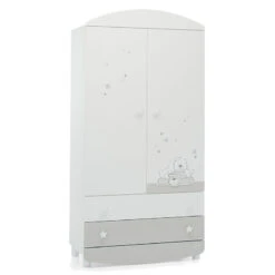 Foppapedretti Armadio Dolcestella con Ante e Cassetti di Foppapedretti ha una solida e robusta struttura in legno verniciata con prodotti esclusivamente atossici e 100% Made in Italy. È fornito di cassettiera, ampio spazio interno, piani regolabili e due barre appendiabiti. L’esclusive maniglie a forma di stella insieme alle ante decorate con simpatici orsetti e stelline donano un tocco magico alla cameretta del tuo bambino.