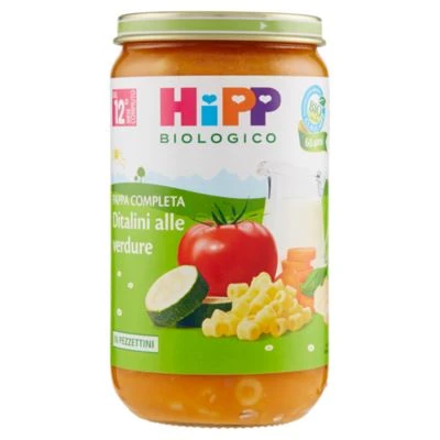 Hipp Ditalini alle Verdure 250 gr. Pappa completa. Omogeneizzato biologico con verdure e pastina.