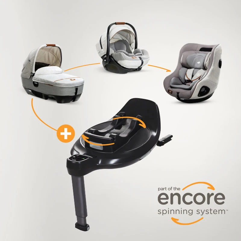 i-Base Encore i-Size di Joie Signature è la base i-Size che garantisce viaggi sicuri e tranquilli per te e per il tuo bambino. Si installa nelle vetture dotate di connettori Isofix, è dotata di piede di supporto, che assicura una maggior stabilità mentre la macchina è in movimento ed è progettato per assorbire l’energia in caso di collisione e ridurre la forza dell’impatto. É il componente principale dell’Encore Spinning System, di cui fanno parte anche il Seggiolino i-Level, la Navicella Calmi e il Seggiolino i-Harbour, pensati per accompagnare nella crescita il bambino fino ai 4 anni. É anche compatibile con i seggiolini per neonati i-Gemm 3 e i-Snug 2.
