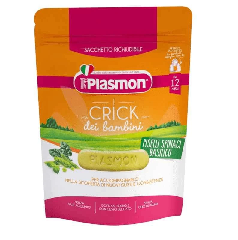 I Crick dei Bambini Piselli, spinaci e basilico, è il nuovo snack salato pensato per le manine del tuo bambino!