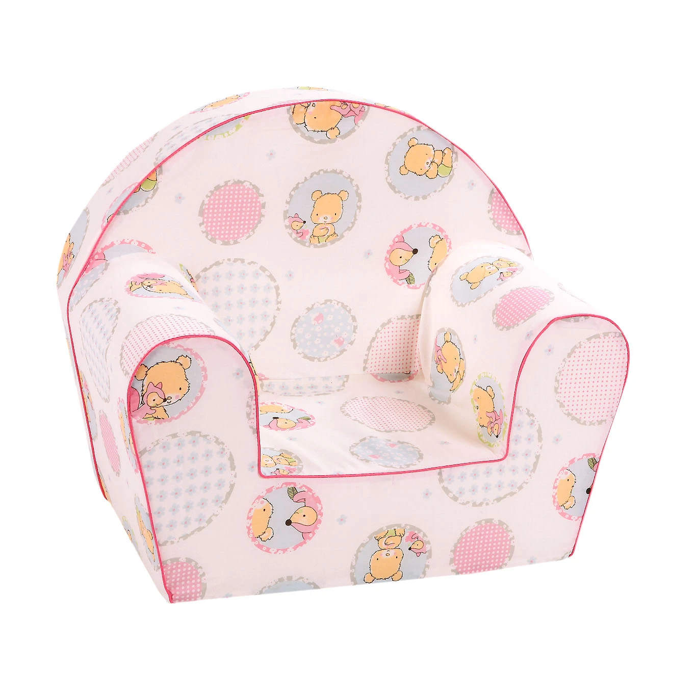 Poltrona in gomma piuma, morbida e colorata. Ideale per la cameretta del bimbo e della bimba… per accompagnarlo nei suoi primi giochi da solo o in compagnia.