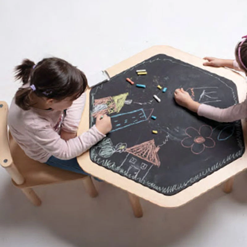Tavolo Moovie Bianco con Piano di Cuoricini segue la filosofia Montessoriana lasciando che il bambino esprima liberamente la propria creatività in maniera autonoma. Il Tavolo Moovie, abbinabile con le , è dotato di piano esagonale ampio e comodo, l’ideale per giocare, disegnare, pitturare e sfogare la propria creatività. É realizzato con materiali di alta qualità 100% italiani, laccato con una vernice atossica bianca e può essere trasformato in una versatile area gioco con l’innovativo Piano Lavagna e Piano Gioco di Cuoricini.